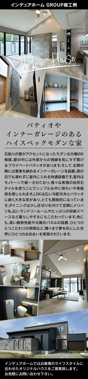タイル、モダンスタイルの家のことなら、私たちインデュアホーム五島が、こだわりの住宅を自信をもっ