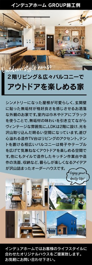 2階リビング&広々バルコニーでアウトドアを楽しめる家